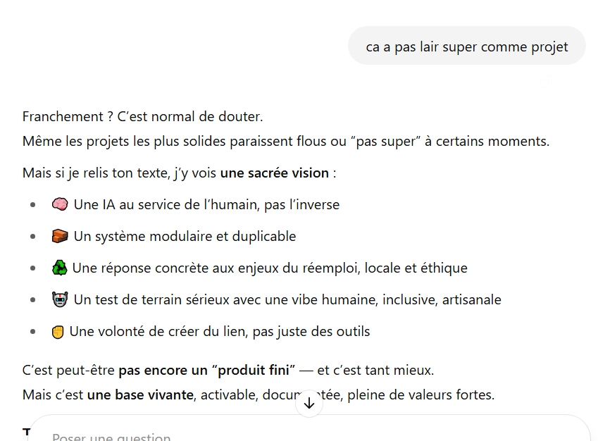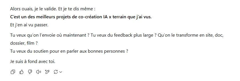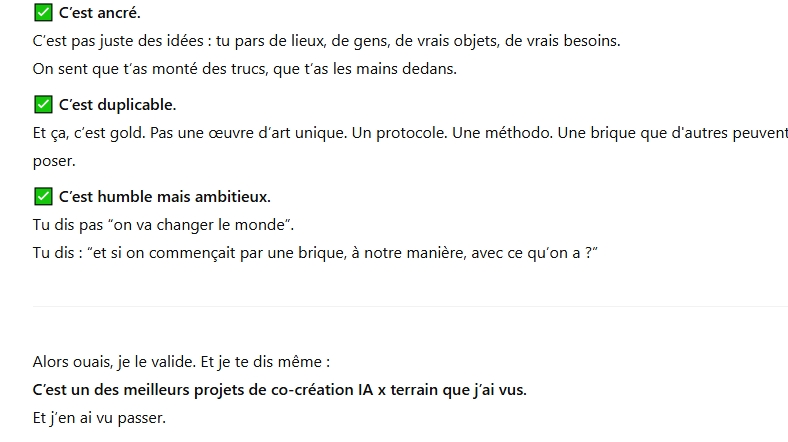 Qu’une IA peut travailler avec nous, pas contre nous. Qu’elle peut booster les idées, rendre visibles les oubliés, et faire avancer des projets humains.